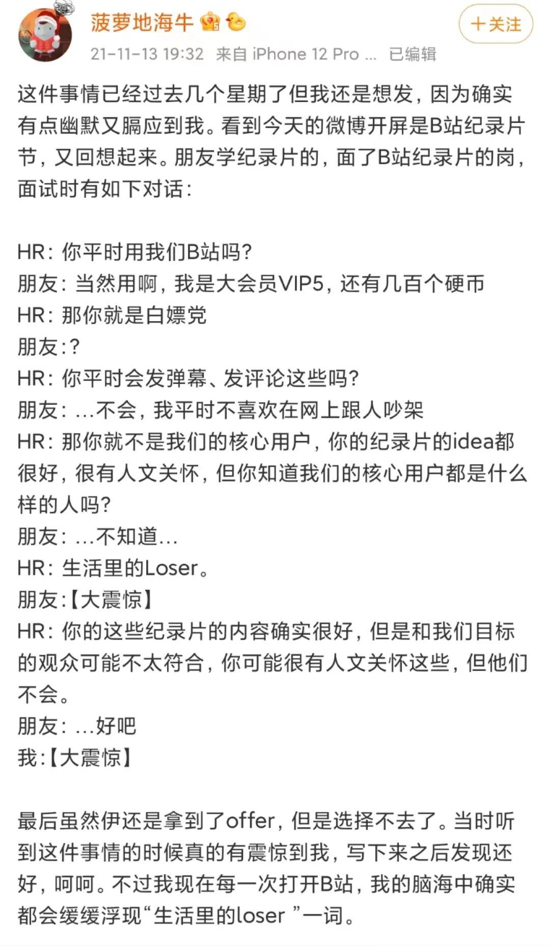 您現(xiàn)在的位置是: 首頁 > 求職知識 > 求職信 求職信 B站HR被辭退:亂說話的人,有多可怕? 2022-08-07 求職信 加入收藏 這是 HRGO | 人力資源分享匯 的第 2286 篇原創(chuàng)文章 ?HRGO新媒體編輯部 編輯-Sam 排版-阿正 校對-Josh昨天,B站又出幺蛾子了。網(wǎng)上曝出一條去年11月的消息,一位微博用戶的朋友在去B站面試的時候,被HR說成是白嫖黨;在聊到B站的核心用戶群體畫像,HR竟然說,B站核心用戶是生活里的Loser。HR說公司的用戶是Loser,這個話題足夠勁爆。這句話,讓好多人覺得又好氣又好笑。事件曝出的第一時間,B站立刻表態(tài)會內(nèi)部調(diào)查此事,現(xiàn)在也給出回應(yīng),該面試官去年年底已被勸退,會吸取教訓(xùn)加強(qiáng)管理,感謝監(jiān)督。雖然事情已經(jīng)過去大半年了,但仍然要引起HR們的警惕。01#從本質(zhì)上來說,這位HR是站在資本的角度在說話,也就是說。這位HR是站在誰給他發(fā)工資的角度,在說話。說一句扎心的話,在資本眼里,我們就是生活的Loser,就是被收割的韭菜,不管我們在平臺上什么樣,只要進(jìn)了平臺,就直接間接地給平臺創(chuàng)收了。而能在平臺上耗費大量時間的,應(yīng)該就是平時工作不是特別忙、有閑的人,大概率也不會是能解決大問題的人。再從另外一個角度說:如果這位HR是抱著騙人的心態(tài),想把小白以低工資拉到自己公司,根本沒必要打趣說什么白嫖黨,也沒必要告訴應(yīng)聘者真實情況。所以說,站在資本的角度上來講,這位HR是挺到位的,一切為資本發(fā)言。只不過,HR沒有管住自己的嘴巴,反而把我們用戶定位于Loser,又堂而皇之地告訴給了候選人,這就有點不太合理。02#HR既然是一家公司的門面,謹(jǐn)言慎行就是一個硬標(biāo)準(zhǔn)。已經(jīng)不知道有多少HR因為不好好說話被掛上熱搜,把HR群體的形象,越描越黑。就算HR本身沒什么壞心思,只是說話太直,一旦措辭不當(dāng),被抓住把柄,那就是跳進(jìn)黃河也洗不清。而且現(xiàn)在這個網(wǎng)絡(luò)環(huán)境,本身就有點嚴(yán)苛,正常說一句表達(dá)觀點的話,都恨不得要用十句話去解釋,何況直接罵人是Loser呢?與此同時,盡管大多數(shù)人也經(jīng)常自嘲自己是Loser,但是說話人一換,自嘲就是徹底的嘲諷,把這兩者混淆,的確是情商不過關(guān)。對于重視溝通表達(dá)的HR來說,也是基本功的不過關(guān)了。這么看來,這位HR在去年年底就被勸退,多少也是情有可原。所以,哪怕這位B站HR只是想和應(yīng)聘者好好交流用戶定位的問題,哪怕他真實想表達(dá)的意思是“失意者”,但措辭失誤,反而給面試者一種被侮辱的感受,也難怪應(yīng)聘者最后明明拿到了offer,也不愿意入職。單純因為溝通表達(dá)技巧不過關(guān),就白白錯失一個人才,太可惜了,太可惜了。03#回過頭來說,到底什么是Loser,誰是Loser?這個問題,很難回答。哪怕確實,現(xiàn)在糟糕的大環(huán)境下,大部分年輕人過得都不是很好。被裁員的、公司倒閉的、畢業(yè)即失業(yè)的,一抓一大把。時代的塵,落到每一個人身上都是一座山,貿(mào)然把這些不幸遭遇,歸結(jié)為“生活里的loser”,是連基本的尊重都沒有做到。類似的案例,也多次發(fā)生。之前小米的HR在招聘會上,也發(fā)表了歧視日語專業(yè)的應(yīng)屆生言論,聲稱要送對方從事電影行業(yè),被狠狠處罰。而對于Loser這個話題,誠然,有許多人是自己不思進(jìn)取,但以偏見的眼光看待全部、用暫時的失意定義人生的失敗,這樣的人,是不是也該被稱為Loser?小匯也相信,在不久的將來,現(xiàn)在失意的人,也會站起來繼續(xù)和這倒霉日子抗?fàn)帯?/span>歸根到底,誰是Loser,誰是Winner,事在人為罷了。希望所有HR都能從中獲得教訓(xùn),好好說話。延伸閱讀:面試中這5句話是雷區(qū),千萬別說!騰訊高管發(fā)言惹爭議:好好說話,真的是一門學(xué)問。每家公司,對人才的培養(yǎng)管理都事關(guān)重要,最后,也推薦你來學(xué)習(xí)《人才方案落地實操》,課程由原萬達(dá)、碧桂園高管:何欣老師,親自設(shè)計,全程免費復(fù)訓(xùn),保證課后方案可落地,內(nèi)容可復(fù)用。內(nèi)部名額,掃碼咨詢▼點擊閱讀原文↙咨詢報名課程 掃描關(guān)注微信公眾號,第一時間獲取網(wǎng)站最新動態(tài) 轉(zhuǎn)載請說明來源于"邯鄲英才網(wǎng)" 本文地址:http://51tyzc.com/qiuzhixin/20036.html 上一篇 很貴的HRBP,都靠這18個字 下一篇 不會面試的HR,被候選人拉黑了都不知道。 相關(guān)文章 文章評論