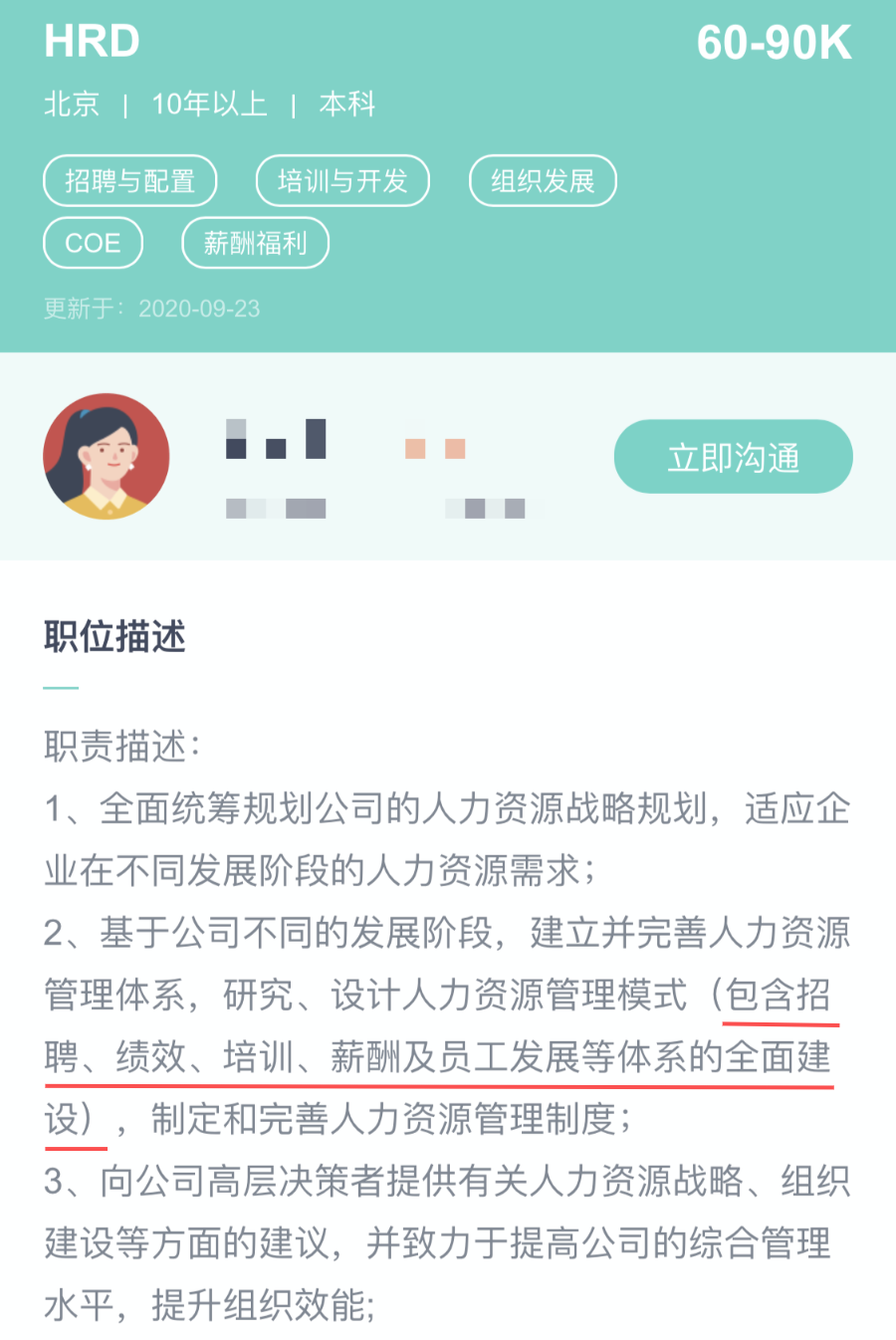 您現(xiàn)在的位置是: 首頁 > 求職知識 > 求職信 求職信 天價薪水,難求這一類HR。 2022-08-07 求職信 加入收藏 現(xiàn)在人力資源市場,很奇怪。一面是很多HR都找不到高薪職位,一面是很多企業(yè)開了高薪也招不到合適的HR。大家似乎都在一個平行宇宙中,互相都看到了對方,但就是無法相遇。01騰訊的「HR六分法」有兩類,特別難招騰訊的HR告訴HRGO,在騰訊,HR一般會被分為6個級別:1 級:初入者2 級:有經(jīng)驗者3 級:骨干級4 級:專家5 級:權(quán)威6 級:資深權(quán)威1級和2級的主要責(zé)任是:執(zhí)行、改進、深入業(yè)務(wù);3級是交付責(zé)任,要對多個人力資源板塊負(fù)起責(zé)任,能跳出自己的視野看問題;4級是要求在團隊中,出什么問題都可以找這個人,他都能解決,如果他解決不了,他也會主動去找其他資源來解決;5級和6級相當(dāng)于HR的一把手,在人力資源部能鎮(zhèn)得住場子,扛得住壓力,同時在高層的會議中也能用專業(yè)去影響決策,推動變革。現(xiàn)在最難招并不是5級、6級的HR,也不是1級、2級的HR,現(xiàn)在市面上最缺的反而是3級和4級的HR。(騰訊內(nèi)部的職業(yè)通道與能力路徑圖)02論市場的需求量OD只能靠邊站目前人力資源基礎(chǔ)人才供應(yīng)量,是十分充足的。不管是人力資源專業(yè)的應(yīng)屆畢業(yè)生,還是轉(zhuǎn)型成為HR的職場人,每年的數(shù)量都不低。但是能系統(tǒng)解決問題,且有全面能力的HR,市場現(xiàn)存的人才遠(yuǎn)遠(yuǎn)不足以支撐如此龐大的需求。換句話說,有全模塊能力的HR,就是極度稀缺的,人才的稀缺與過高,也導(dǎo)致很多公司開出的薪酬都有點離譜的高。一位能解決問題的全模塊人力資源主管的工資,居然開到了5萬,一個月,這確實有點虛高。我們也詢問了騰訊的HR,他們告訴HRGO,騰訊現(xiàn)在對外的OD需求大概是10位左右,但對HR的招聘需求是超過200位的。所以,現(xiàn)在最稀缺的HR,并不是被誤傳的OD,因為能做組織發(fā)展的企業(yè),一定是大中型企業(yè),但國內(nèi)大中型企業(yè)的數(shù)量在企業(yè)總數(shù)上的占比,都不到5%。不是說OD不好,而是說我們從數(shù)學(xué)的概率上來說,OD的需求并不算太大。騰訊的HR,告訴我們,現(xiàn)在騰訊內(nèi)部,最稀缺的HR,一般是以下三類:1、熟悉或者精通人力資源所有模塊,最好曾經(jīng)做過一陣子的業(yè)務(wù),有非常強的業(yè)務(wù)思維。具有跨界管理和銷售的綜合性人才比較稀缺。2、理解公司的經(jīng)營,理解一家公司是如何賺錢的,能站在一定的高度上看問題,同時又具備超強的人力資源問題解決能力,有扎實的管理基礎(chǔ),這類人一般只能自己培養(yǎng)出來,市場上非常稀缺。3、參與多個大型項目的建設(shè)與推動,善于溝通,善于調(diào)動資源,在人力資源崗位上基本沒有弱項,遇到任何問題都可以應(yīng)對或解決,有超強的適應(yīng)性與內(nèi)驅(qū)力。03為什么企業(yè)要給HR開那么高的薪水?只要你做過招聘,就會發(fā)現(xiàn)這樣三個規(guī)律:一、候選人的完全匹配度非常不高,但某一技能模塊匹配度又很高,直接選用的話要考慮培養(yǎng)成本,不選用又感覺可惜,招聘者經(jīng)常處在兩難的選擇,這個決策成本非常高。最后到底要還是不要,是個世紀(jì)難題。二、有些候選人,底子不錯,但是需要思維轉(zhuǎn)變。特別是那些抱著跟風(fēng)的心態(tài)過來嘗試的候選人,他們是HRBP火了就去做HRBP,OD火了就像去做OD。但人力資源基本的基礎(chǔ)打的非常弱,導(dǎo)致最后眼高手低,錯過了很多機會。三、有些候選人往往是僅僅通過網(wǎng)絡(luò)上幾篇文章的閱讀,就過來面試某個人力資源崗位,認(rèn)為自己已經(jīng)很了解了,最后問到具體問題的時候,就答不上了,這種隨波逐流的心態(tài)可能會導(dǎo)致什么也做不好。我們看到現(xiàn)在幾乎所有高薪的HR職位,都在提這些關(guān)鍵詞:全模塊、全面、各版塊... ...人力資源工作看似是一個接近于萬金油的工作,可選的余地大并不意味著對從業(yè)者沒有要求。恰恰相反,這樣的工作恰恰需要從業(yè)者有扎實的人力資源基礎(chǔ),相對完備的管理學(xué)、經(jīng)濟學(xué)、心理學(xué)的知識結(jié)構(gòu)儲備。如果你具備了扎實的基礎(chǔ),在上手工作的過程中,也會快人一步。對了,我們HRGO特別設(shè)計了一套張曉彤老師親授的《HR全模塊提升訓(xùn)練營》課程,學(xué)習(xí)氛圍濃厚,好評滿滿▼我們的訓(xùn)練營,不僅讓很多HR跨出了自己的舒適圈,實現(xiàn)了專業(yè)技能的拓展,還結(jié)交了很多優(yōu)秀HR,開闊了自己眼界。現(xiàn)在加入訓(xùn)練營,你還會獲得學(xué)習(xí)禮盒+教具+工具包+證書+……多重福利!如果你心動了,想要了解詳情添加下方課程助教@菠蘿妹她會為你介紹學(xué)習(xí)內(nèi)容 掃描關(guān)注微信公眾號,第一時間獲取網(wǎng)站最新動態(tài) 轉(zhuǎn)載請說明來源于"邯鄲英才網(wǎng)" 本文地址:http://51tyzc.com/qiuzhixin/20047.html 上一篇 社保繳費基數(shù)又漲了,太難了。 下一篇 逼走員工的,是亂獎勵。 相關(guān)文章 文章評論