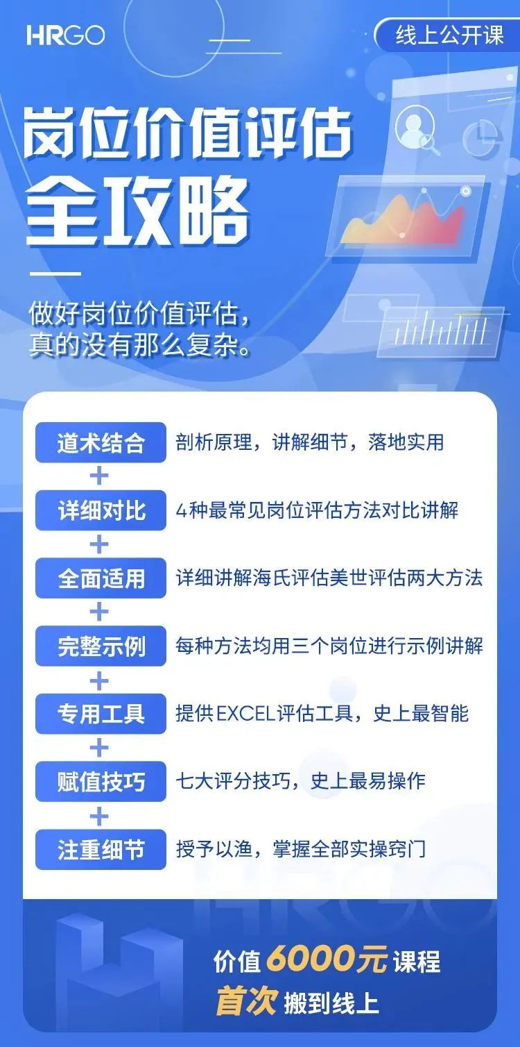把價值¥6000元的《崗位價值評估實操全攻略》線下公開課搬到了線上講!現(xiàn)在¥99 就能學習完整 8 節(jié)課!
